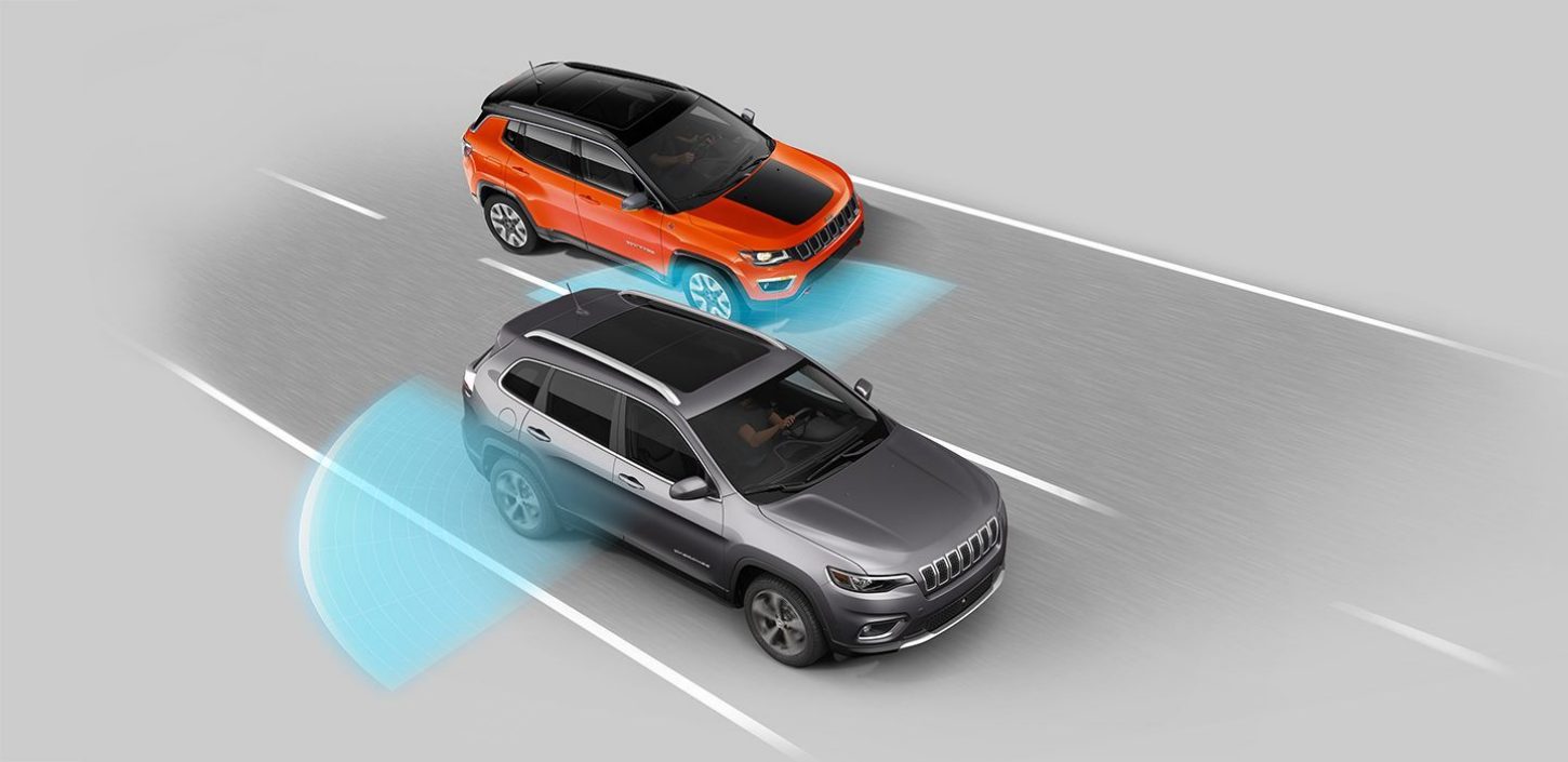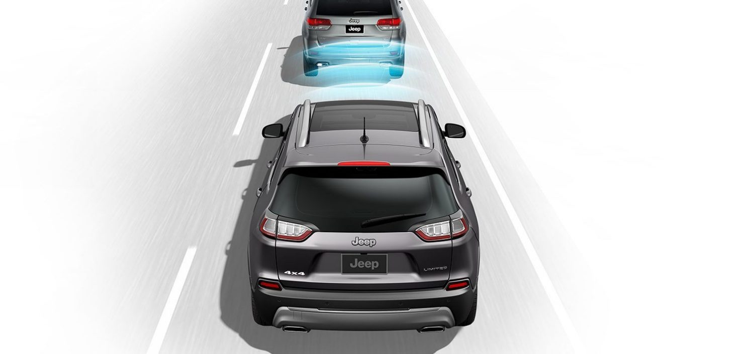 Система мониторинга "слепых" зон постоянно контролирует пространство между вашим Jeep® Cherokee и другими автомобилями. С помощью двух радарных датчиков система может обнаружить автомобиль, движущийся в одной из двух "слепых" зон, которые не видны в зеркалах заднего вида. В таком случае система подает вам предупреждающие звуковые сигналы и подает визуальный сигнал на наружном зеркале заднего вида.